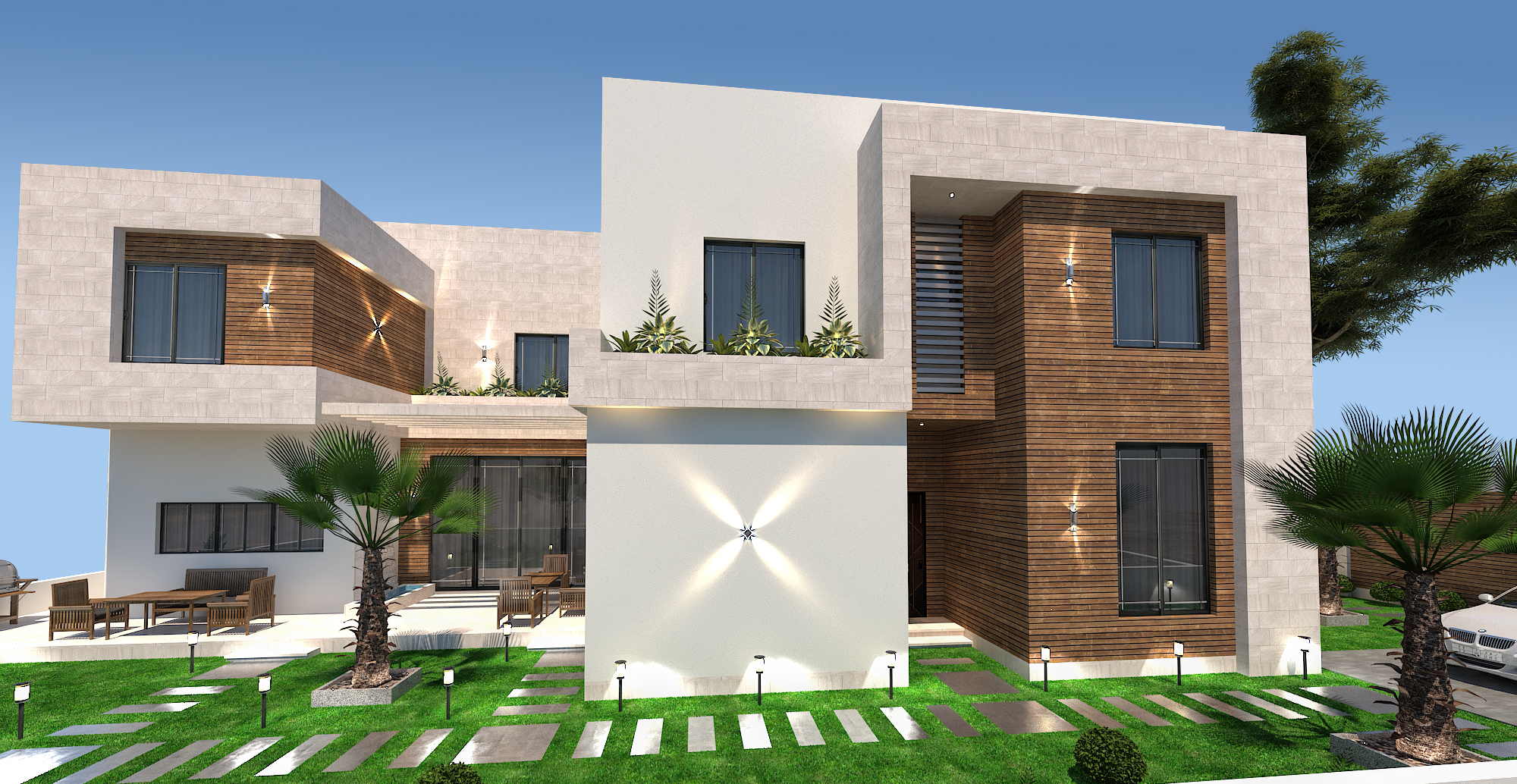 النمط الحديث ( Modern Architecture ):- • وهو النمط الذي يضم مجموعة من الأساليب المعمارية و التي تهدف في المقام الأول إلى تبسيط الأشكال إلى أشكال هندسية واضحة والتي تظهر جمال الحيز و المواد المستخدمة و الإستغناء عن الزخارف، كما إنها تخلق اتصال بصري بين المساحات الداخلية و الموقع الخارجي و الإعتماد الكبير على الإضاءة الطبيعية والألوان الطبيعية، وإستخدام مواد وأنظمة حديثة في البناء, كما يتميز النمط الحديث بالتوفير في التكلفة دون التأثير في جمالية وبساطة المبنى.