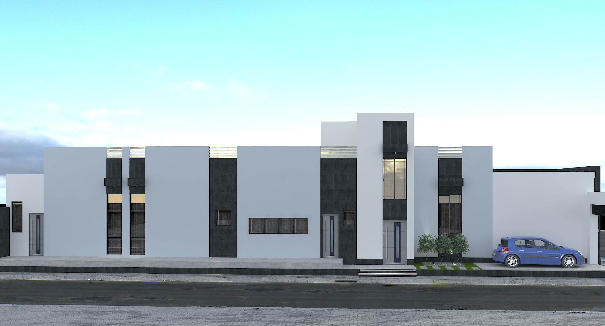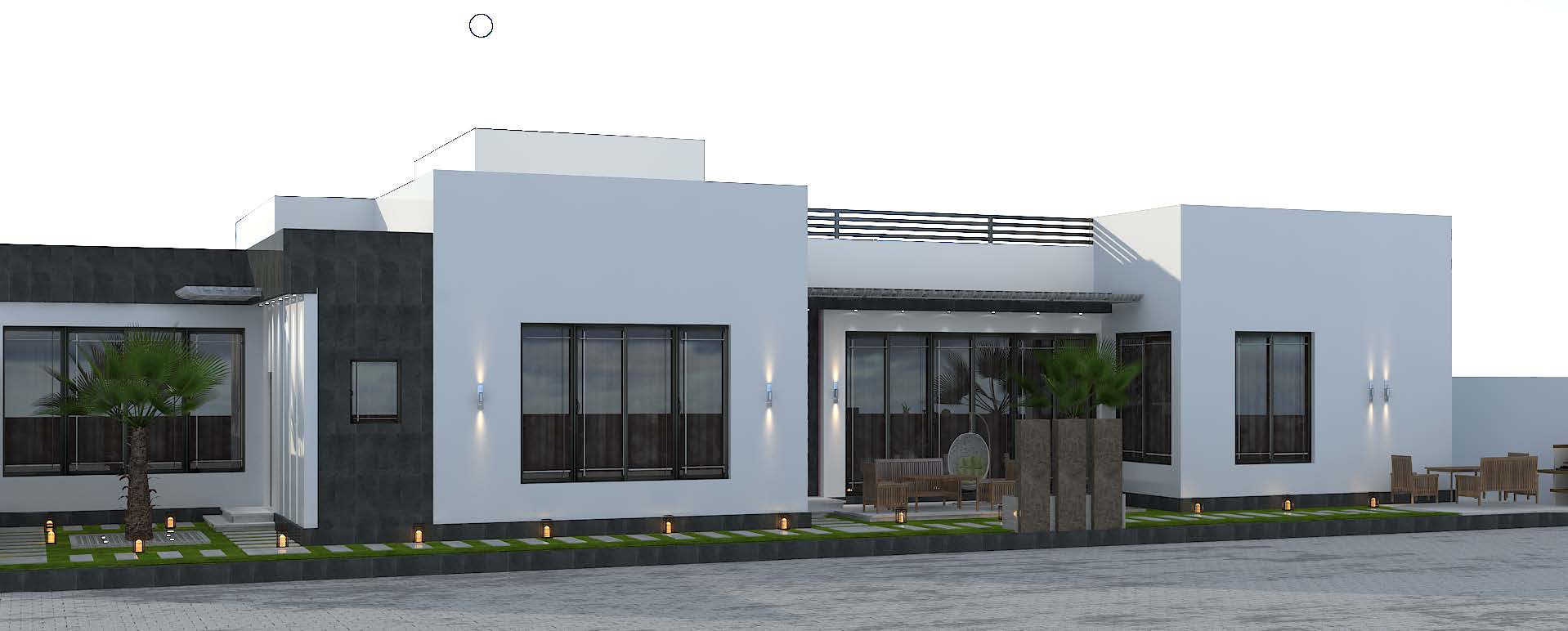 النمط الحديث ( Modern Architecture ):- • وهو النمط الذي يضم مجموعة من الأساليب المعمارية و التي تهدف في المقام الأول إلى تبسيط الأشكال إلى أشكال هندسية واضحة والتي تظهر جمال الحيز و المواد المستخدمة و الإستغناء عن الزخارف، كما إنها تخلق اتصال بصري بين المساحات الداخلية و الموقع الخارجي و الإعتماد الكبير على الإضاءة الطبيعية والألوان الطبيعية، وإستخدام مواد وأنظمة حديثة في البناء, كما يتميز النمط الحديث بالتوفير في التكلفة دون التأثير في جمالية وبساطة المبنى.