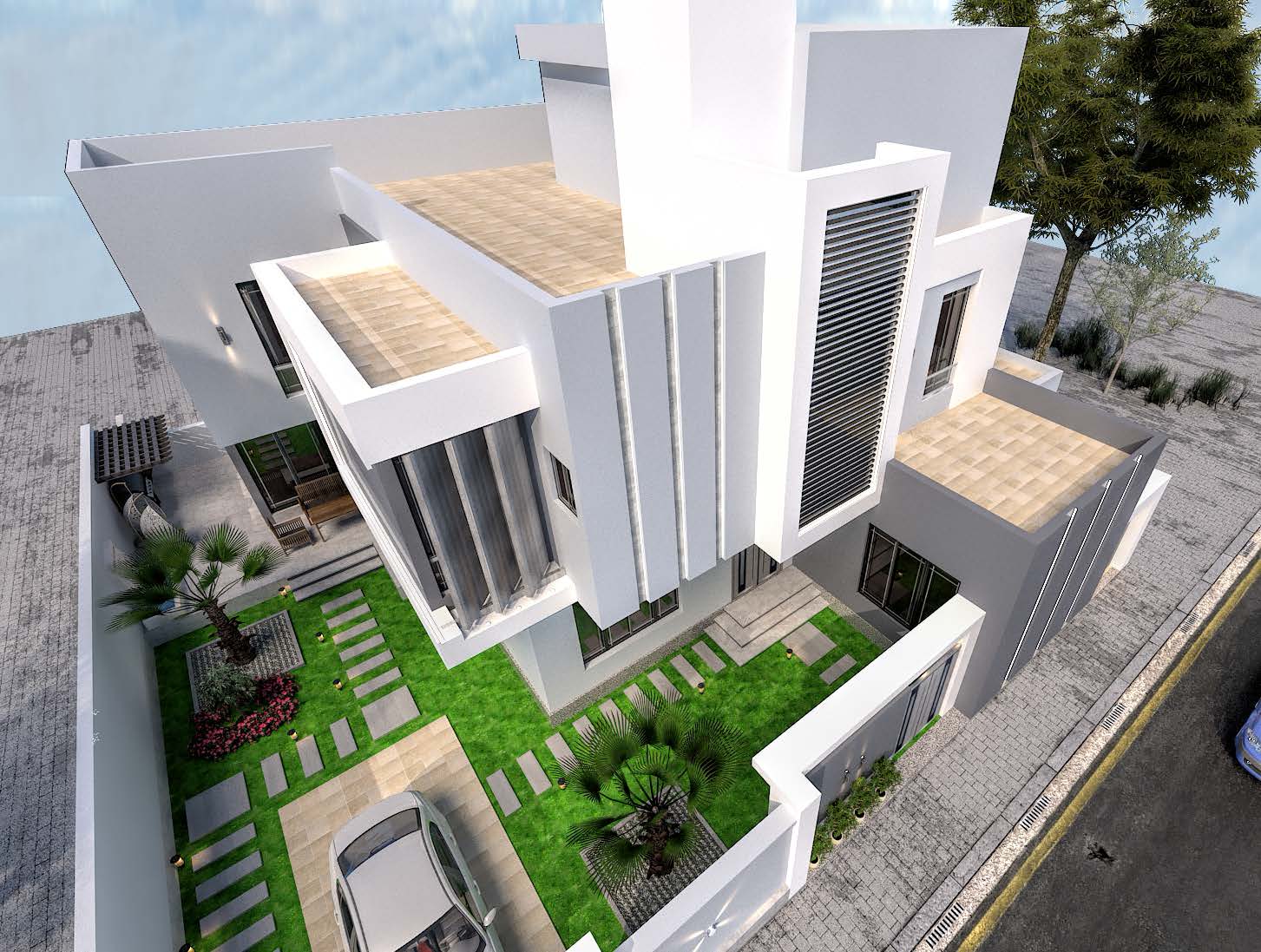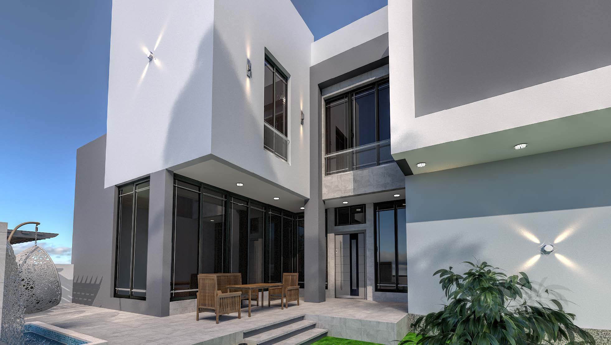 النمط الحديث ( Modern Architecture ):- • وهو النمط الذي يضم مجموعة من الأساليب المعمارية و التي تهدف في المقام الأول إلى تبسيط الأشكال إلى أشكال هندسية واضحة والتي تظهر جمال الحيز و المواد المستخدمة و الإستغناء عن الزخارف، كما إنها تخلق اتصال بصري بين المساحات الداخلية و الموقع الخارجي و الإعتماد الكبير على الإضاءة الطبيعية والألوان الطبيعية، وإستخدام مواد وأنظمة حديثة في البناء, كما يتميز النمط الحديث بالتوفير في التكلفة دون التأثير في جمالية وبساطة المبنى.