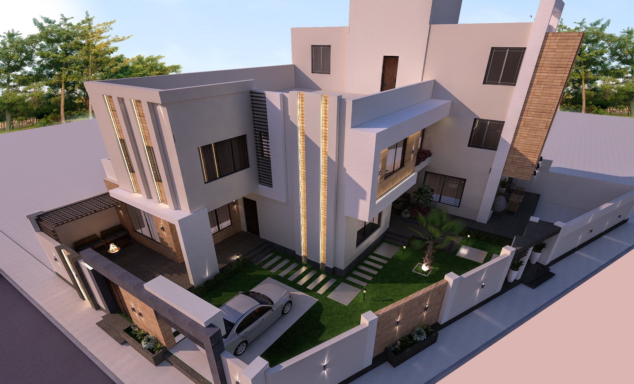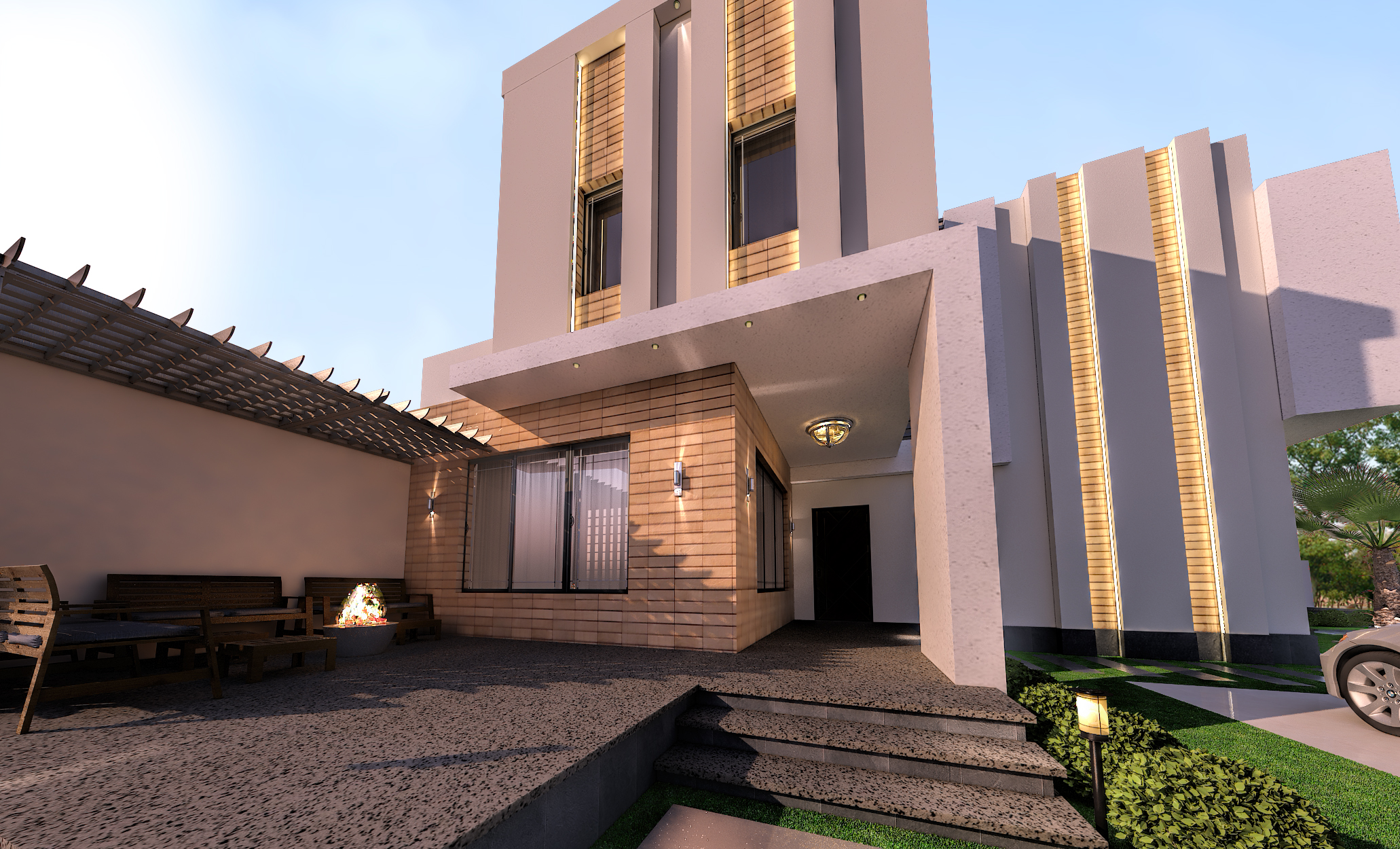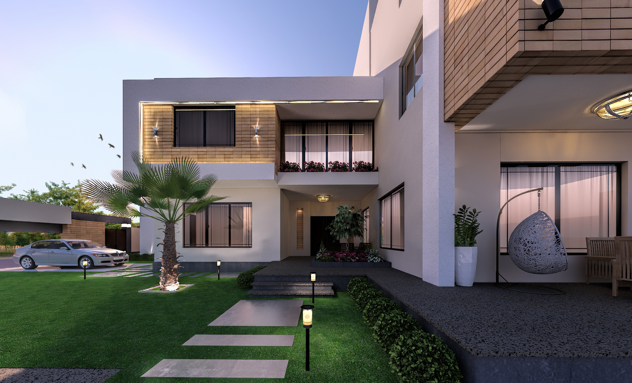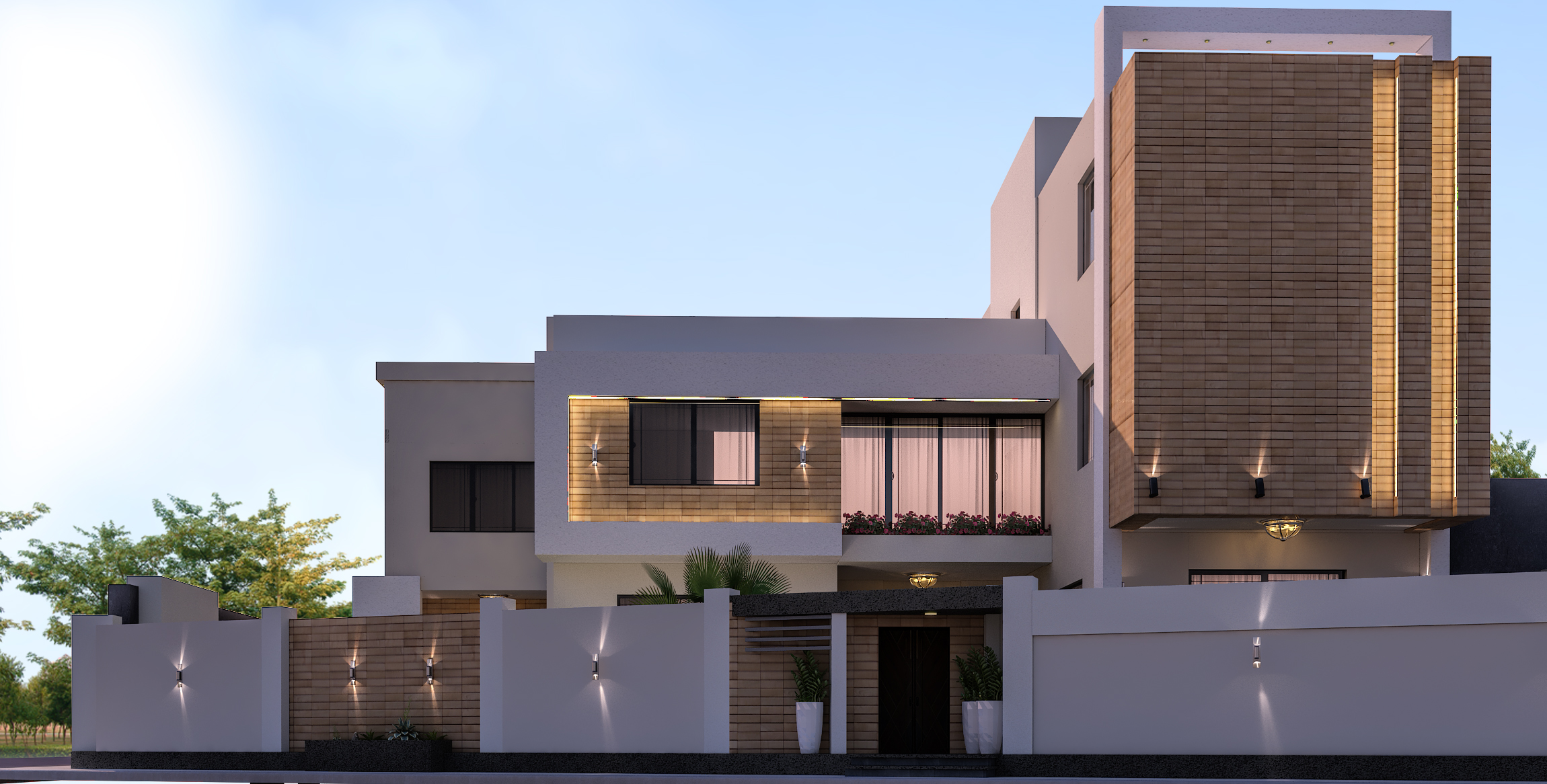 النمط الحديث ( Modern Architecture ):- • وهو النمط الذي يضم مجموعة من الأساليب المعمارية و التي تهدف في المقام الأول إلى تبسيط الأشكال إلى أشكال هندسية واضحة والتي تظهر جمال الحيز و المواد المستخدمة و الإستغناء عن الزخارف، كما إنها تخلق اتصال بصري بين المساحات الداخلية و الموقع الخارجي و الإعتماد الكبير على الإضاءة الطبيعية والألوان الطبيعية، وإستخدام مواد وأنظمة حديثة في البناء, كما يتميز النمط الحديث بالتوفير في التكلفة دون التأثير في جمالية وبساطة المبنى.