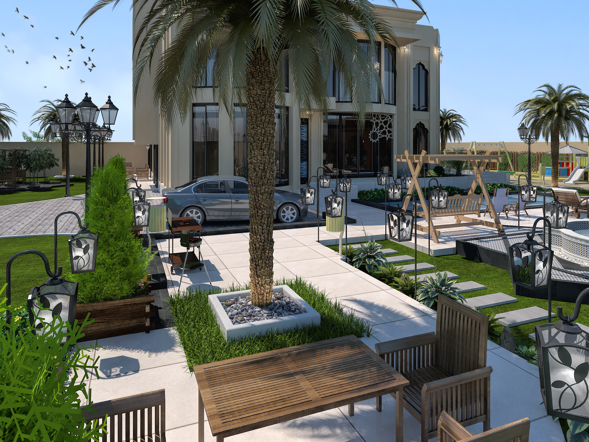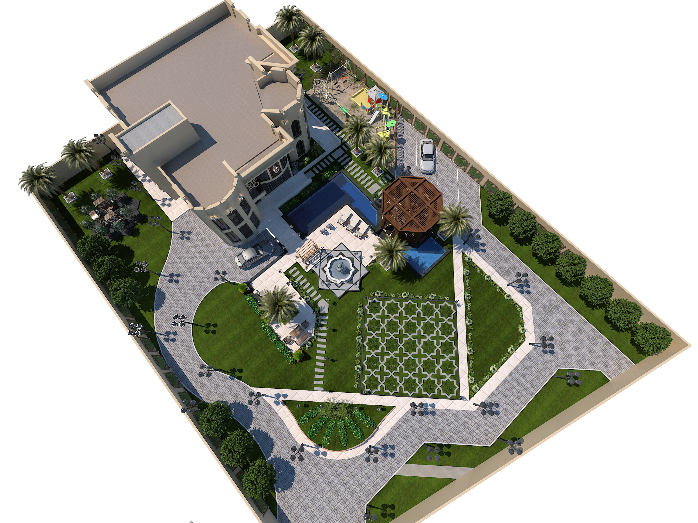 تصميم اللاندسكيب ( Landscape ):- هو فن تنسيق وتزيين الحدائق وهو مصطلح يعرف ايضا بإسم المناظر الطبيعية حيث يستخدم فيه نباتات الزينة وزخرفة الحديقة ويتضمن العديد من الاعمال المتعلقة بالموقع كالبحيرات والنوافير والشلالات والمشايات والمظلات والجلسات الخارجية والطرق والممرات.