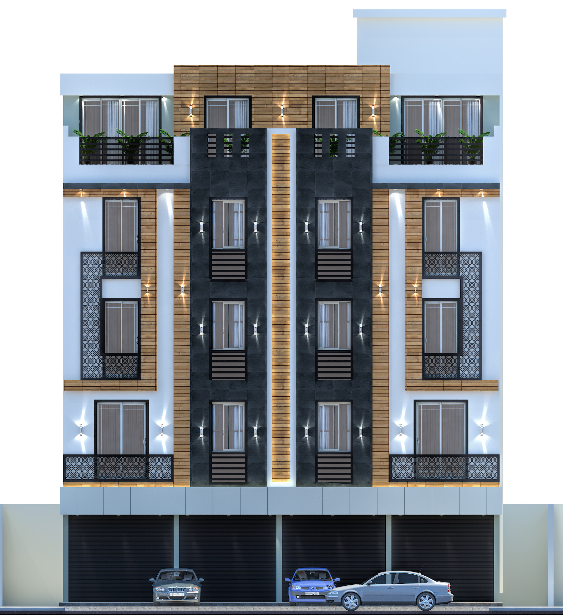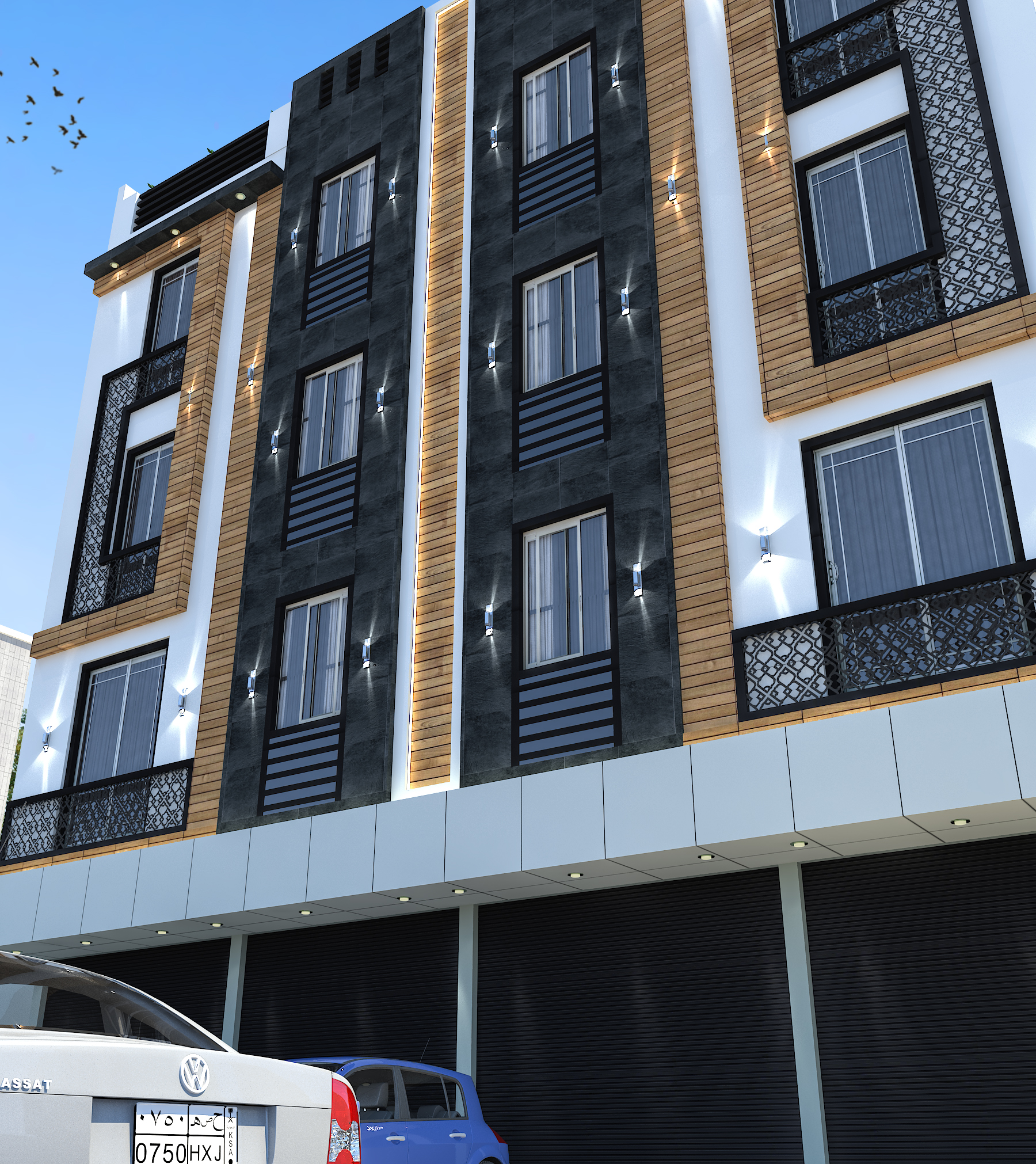 النمط الحديث ( Modern Architecture ):- • وهو النمط الذي يضم مجموعة من الأساليب المعمارية و التي تهدف في المقام الأول إلى تبسيط الأشكال إلى أشكال هندسية واضحة والتي تظهر جمال الحيز و المواد المستخدمة و الإستغناء عن الزخارف، كما إنها تخلق اتصال بصري بين المساحات الداخلية و الموقع الخارجي و الإعتماد الكبير على الإضاءة الطبيعية والألوان الطبيعية، وإستخدام مواد وأنظمة حديثة في البناء, كما يتميز النمط الحديث بالتوفير في التكلفة دون التأثير في جمالية وبساطة المبنى.